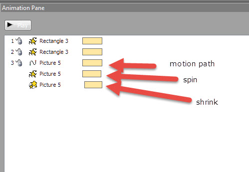 Download my sample pptx Then in PowerPoint open the animation pane and study the animation sequence ![]() |